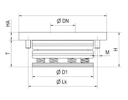 | 订货号 | 尺寸 | dia. D | dia. DN | dia. D1 | H | HA | dia. LK | M | T |