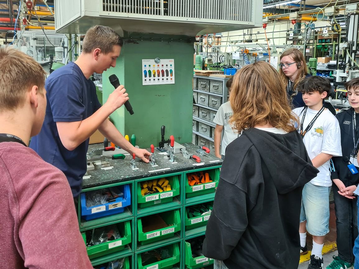 2025年5月23日周五,AMF荣幸接待了费尔巴赫市古斯塔夫·施特雷泽曼文理中学(GSG)、弗里德里希·席勒文理中学(FSG)及赫尔曼·黑塞实科中学(HHR)约23名学生代表访问AMF生产基地。