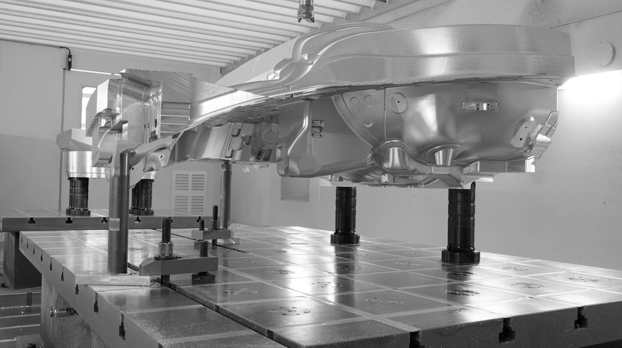 在一款全新汽车车型尚未驶上公路之前,它早已能在一家巴伐利亚模型制造厂中“悄然成形”——当然,这一切都在严格的保密条件下进行。该厂的专业团队可为众多整车厂(OEM)从整块铝锭切削加工出 1:1 实物比例的整车模型。借助 AMF英世齐的智能零点定位系统,这些重达数吨的铝合金毛坯能凭借极高的过程可靠性进行高速、灵活且重复精度一致的切削加工。