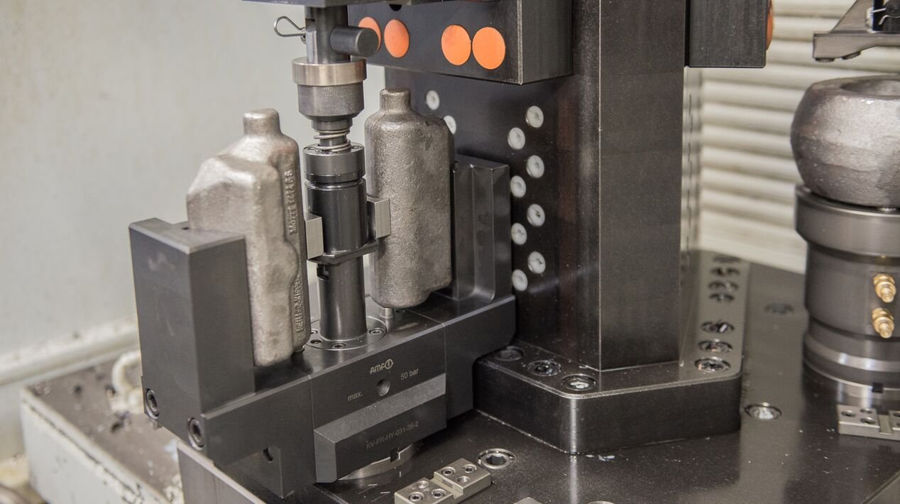 当一家商用车制造企业将液压零部件的生产通过加工中心和自动上下料系统实现自动化后,机床利用率显著提升。然而,与主轴加工并行的换装环节却成为生产瓶颈。AMF英世齐正在研发一套完整的解决方案——结合液压夹紧元件与零点定位技术,实现灵活与高速兼备的生产模式。
