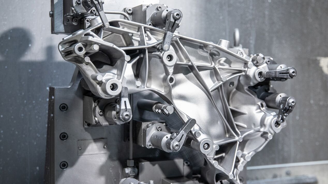 该企业每年消耗4000吨以上的铝材,依托42台主要为全自动的压铸机,以高节拍率完成生产。其产量范围从每周10件至15000件,既能覆盖小批量定制,也能满足大规模量产。其产品包括:汽车底盘零件、发动机与变速箱轴承、电子控制单元外壳、空调压缩机复杂零件、车灯及节温器壳体等。
