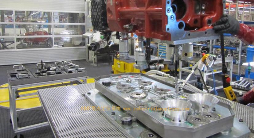 在产品质检中,来自四条生产线的产品都需要被检测。来自14个产品家族的齿轮箱包括其变异产品都未被分类管理。另外,超现实的powershift双离合变速器和无级变速器的功能性检测,压力,渗漏检测和旋转检测都会在他们进入到OEM生产线之前进行。这些检测时间安排都必须精确到天。在将这些齿轮箱进行试车之前,操作人员会将AMF零点接头安装在待检齿轮箱上的螺纹孔,每个零点接头都被用颜色标注,而客户定制的零点定位工作台则有与之对应的零点定位单元www.industrialsupplygrp.com。