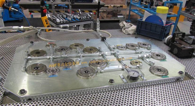 在生产加工中,我们需要将夹具安装到机床工作台上,并且需要校正夹具相对工作台的位置精度。这一安装、校正过程占用很长的生产时间,少则半个小时多则一两个小时。使用AMF零点定位系统,从开始更换夹具到开始进行机械加工,总时间只需要1分钟。