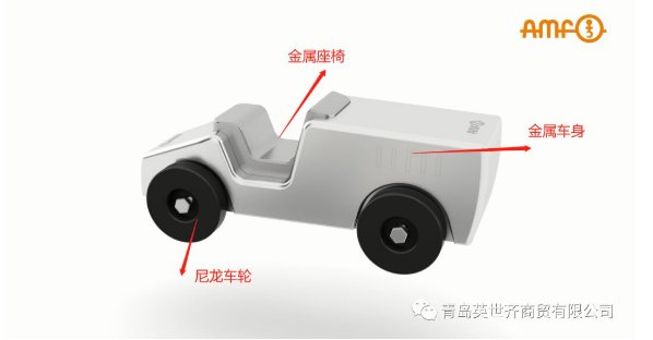 该模型小车由三部分组成,金属座椅,金属车身,尼龙车轮。