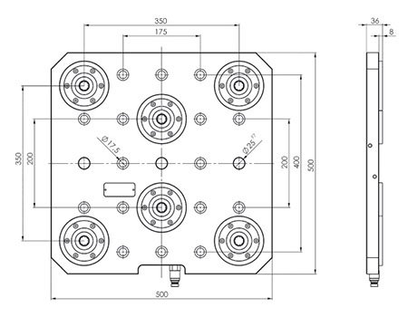 液压零点定位系统适用于T型槽间隙为100mm的机床工作台,通过M16的沉头螺栓紧固。至少有两个定位孔,以便准确定位。液压快速接头是预先安装好的,气压除屑功能接口可选择性的接通。