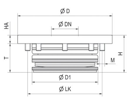 | 订货号 | 尺寸 | dia. D | dia. DN | dia. D1 | dia.LK | H | HA | M | T |