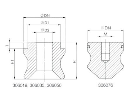 | 订货号 | 尺寸 | dia.DN | dia.D1 | dia.D2 | H | H1 | M | T | 重量[g] |