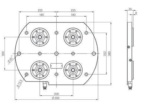 液压零点定位系统适用于T型槽间隙为63mm的机床工作台,通过M12的沉头螺栓紧固。至少两个定位孔,以便准确定位。两个零点定位器之间的间距是200mm。液压快换接头是预先安装好的,气压除尘功能接口可选择性的接通。