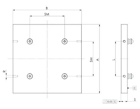 零点定位系统应用图例2 双头零点定位单元应用 ---双头零点定位单元可以被用来快速调节间距,从而使小批量多品种零件的装夹更快速,更简单。