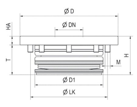 | 订货号 | 尺寸 | dia. D | dia. DN | dia. D1 | H | HA | dia.LK | M | T |