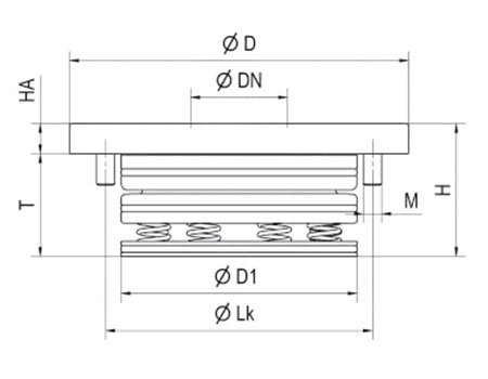 | 订货号 | 尺寸 | dia. D | dia. DN | dia. D1 | H | HA | dia.LK | M | T |