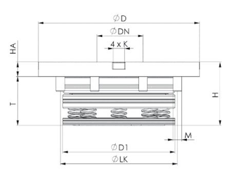 | 订货号 | 尺寸 | dia. D | dia. DN | dia. D1 | H | HA | K F6 | dia.LK | M | T |