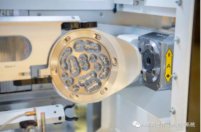 零点定位系统应用图例3 零点定位系统用于钛合金假牙的自动化生产