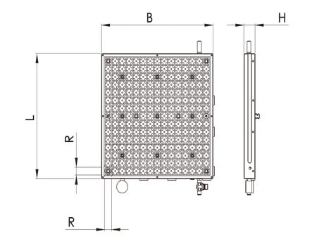 | 订货号 | 使用压力[bar] | 真空度max[%] | 真空吸嘴数量 | L | B | H±0.1 | R | 重量[KG] |
